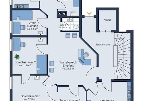 - ca. 100 m² helle und freundliche Räume im 1. Obergeschoss
