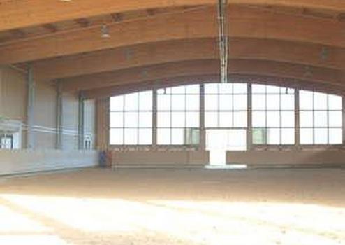 Diese moderne Reitanlage überzeugt durch eine durchdachte Planung mit kurzen Wegen und hochwertiger Ausstattung. Herzstück ist die Reithalle (20 x 40 m) mit angrenzendem Seitengang (4 x 20 m) und einer Beregnungsanlage von Buchholz. Für optimale Lichtverhältnisse sorgt eine LED-Beleuchtung in der gesamten Halle wie auch im übrigen Gebäudekomplex.