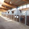 Die Stallungen bieten Platz für 15 großzügige Boxen (je ca. 13 m²), alle mit genehmigten Paddocks. Angrenzend befinden sich ein großer Waschplatz mit Warm- und Kaltwasseranschluss sowie Solarium, ebenso eine komfortable Sattelkammer mit Fußbodenheizung. Direkt an der Stallgasse liegt eine Führanlage, und auch das Heulager ist praktisch nah angebunden.