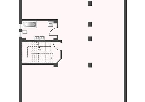 Sie befindet sich im Untergeschoss eines Wohn- und Geschäftshauses und ist derzeit an eine Matratzenfirma vermietet.
