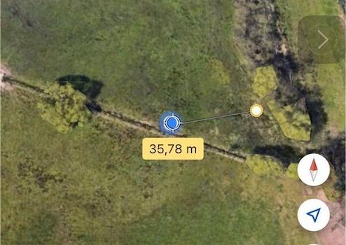 Südöstlich das kleine Fließgewässer der Lache und in westlicher Richtung eine bewirtschaftete
