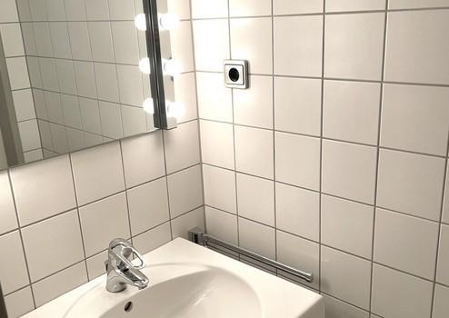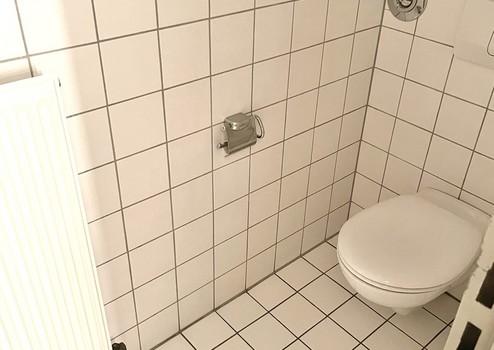 Ebenfalls befindet sich hier eine WC-Anlage mit Toilette und Wachbecken.