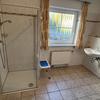 Das Badezimmer verfügt über eine ebenerdige Dusche, Haltegriffe, einen erhöhten WC-Sitz und großzügige Bewegungsflächen.