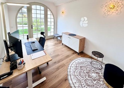 Die großzügige Terrasse erweitert den Arbeitsbereich ins Freie und schafft eine angenehme Atmosphäre für Pausen, Meetings oder informelle Gespräche.