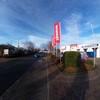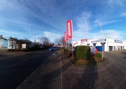 Beste Sichtbarkeit durch Werbepylonen und Fahnen.