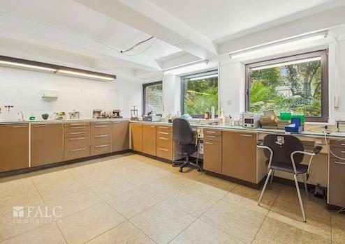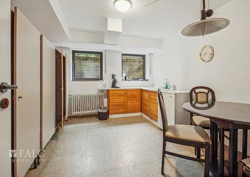 Das Souterrain bietet weitere praktische Flächen: Neben einem gemütlichen Pausenraum und einer potenziellen Labor- oder Arbeitsfläche stehen hier auch zusätzliche Abstellmöglichkeiten zur Verfügung.