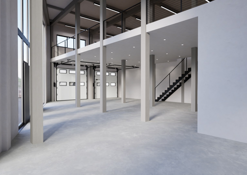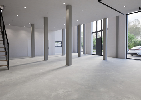 Ab Sommer 2026 entstehen hochwertige, moderne Ausstellungs- und Gewerbeflächen über zwei Etagen mit großzügigen Fensterfronten für optimale Sichtbarkeit und Lichtverhältnisse.