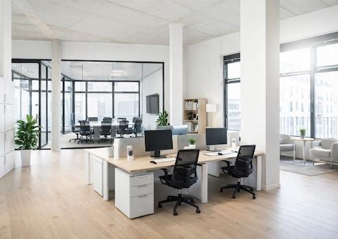 Die Flächen werden wahlweise mit Parkett- oder Vinylboden ausgestattet und verfügen über einen Hohlraumboden mit Bodentanks.