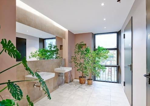 Eine separate Teeküche mit hochwertiger Küchenmöblierung eröffnet Platz für Pausen oder kleine Meetings. Die getrennten Sanitärbereiche verfügen über eine zentrale Dusche und werden durch ein barrierefreies WC ergänzt.