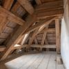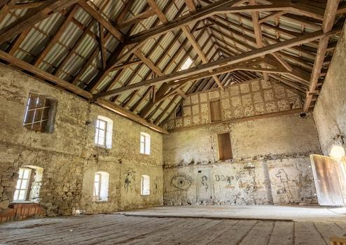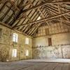 Die L-förmig angebaute Zehntscheune bietet ein riesiges Flächenpotential und luftige Höhe, denn sie erstreckt sich über mehrere Geschossebenen. Sie ist von der Nord-Westseite direkt befahrbar durch zwei in Sandstein gefassten Rundbogen-Tore. Darunter befinden sich die früheren Stallungen, diese sind von der Innenhofseite ebenerdig zugänglich.