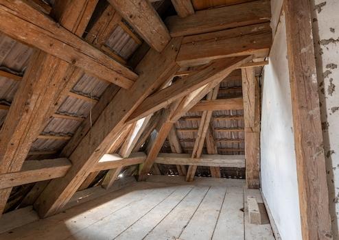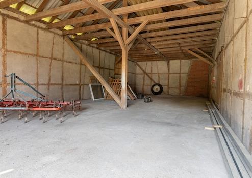 Weiteres Platzpotential bietet das mächtige landwirtschaftliche Gebäude (inkl. ehem. Stallungen im UG Bereich) auf dem hinteren Grundstücksteil, überwiegend in Fachwerk erbaut und später aufgestockt. Dieses Gebäude und auch die angebaute Zehntscheune sind mit Eternitplatten eingedeckt.