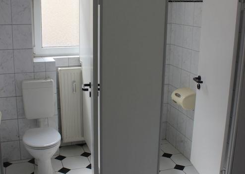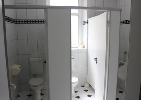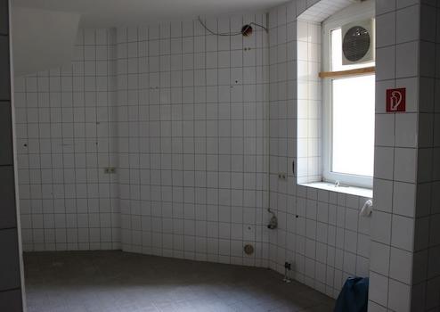 Eine großzügige Küche, ein kleines Büro, ein Lagerraum sowie Toiletten für Damen, Herren und Personal sind vorhanden.