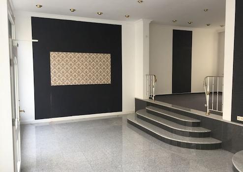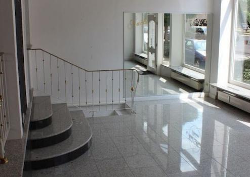 Die Gewerbeeinheit besticht durch ihre große Fensterfront und den großzügigen offenen Ladenbereich mit Marmorfliesen.