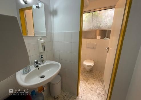 Ergänzend zum Hauptbereich stehen ein separates Büro, ein Lagerraum sowie zwei getrennte WC-Anlagen zur Verfügung – ideal für Kunden- und Mitarbeiterbetrieb. Durch die ebenerdige Zugangssituation gelangen Besucher bequem und barrierearm direkt vom Außenbereich in den Verkaufsraum.