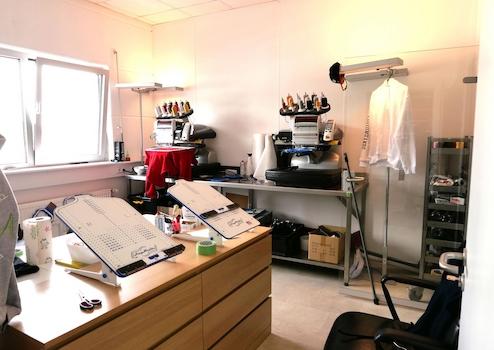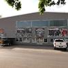 Showroom 1 & Bürofläche / Kundenempfang / Steinboden, Fließen, Deckenbeleuchtung LED, EDV Verkabelung, Toilette, Abstellraum, kleiner Arbeitsraum, große Sektionstore, Eingangstüren und Nebentüren in Stahl, großes Doppel-Metalltor, Fenster Tageslicht - vergittert, Kundenparkplätze direkt vor dem Eingangsbereich und zahlreiche weitere im Hof.