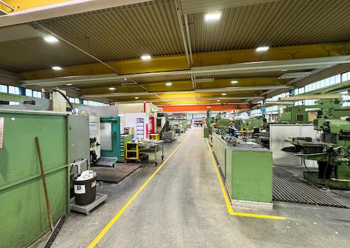 Halle 1: ca. 4.700 m² Produktions-/Lagerfläche im Erdgeschoss mit 7 Krananlagen, 3 großen Rolltoren und einer Verladerampe + ca. 1.000 m² im Untergeschoss mit Büro und Sanitäranlagen (Dach + Heizung erneuert)