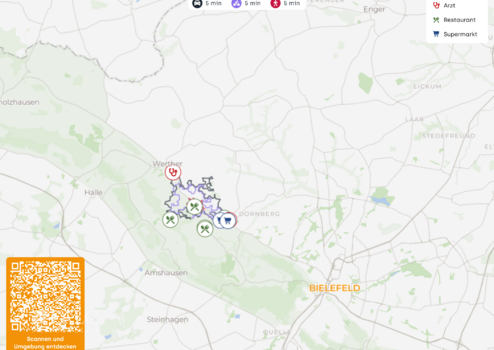 Parkmöglichkeiten stehen direkt am Objekt und in unmittelbarer Umgebung in ausreichender Zahl zur Verfügung. Die Anbindung an die Innenstadt von Werther sowie an Bielefeld ist sehr gut; beide Orte sind in wenigen Minuten erreichbar.