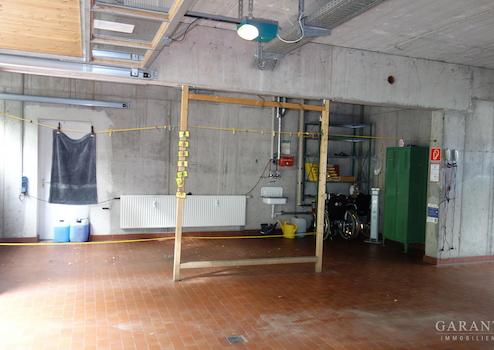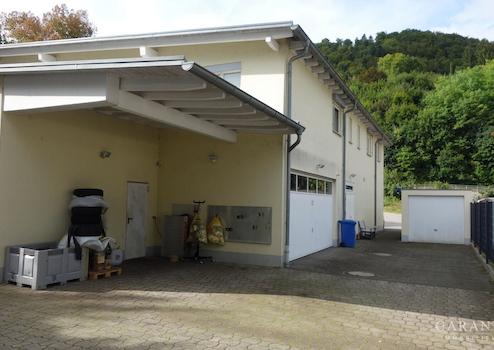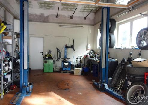 Im Nebenbereich befinden sich fünf Garagenstellplätze sowie ein Werkstattraum mit Hebebühne.