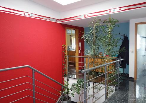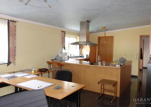 Im Obergeschoss befindet sich die großzügige Wohnung mit ca. 192 qm. Diese verfügt über einen offenen Wohn-/Essbereich mit Küche, von welchem Sie auf die Terrasse gelangen.