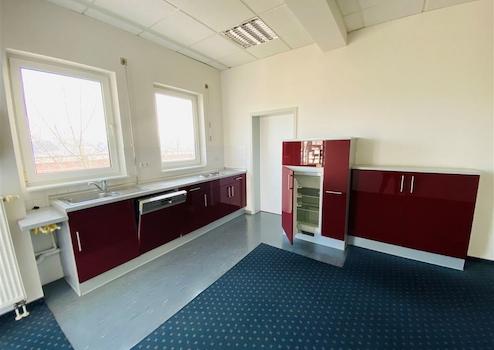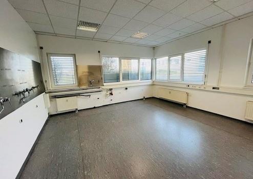 Empfang, Sekretariat mit Anmeldung, 3 Einzelbüros und ein Großraumbüro. Warenaus- und Eingang, 2 Werkstätten mit Lager, Toilettenanlage, Vorraum und EDV-Raum, Besprechung- und Aufenthaltsraum, Küche mit Notausgang, Kopierraum und Flur.