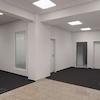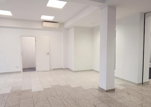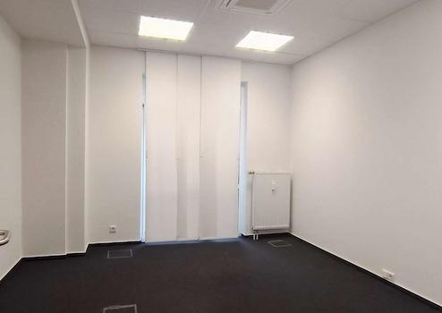 Links befindet sich der erste Büroraum, ideal für konzentriertes Arbeiten. Durch die großen Fenster ist eine angenehme Arbeitsumgebung gegeben. Weiter geht es in den zweiten Büroraum, der ebenfalls gut belichtet ist und Platz für Arbeitsplätze bietet.
