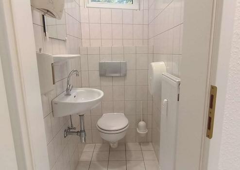 In der funktionalen Küche können Sie bei Kaffee oder Tee Ihre Auszeit genießen. Angrenzend finden Sie zwei separate WCs, die den Komfort für Mitarbeiter und Besucher erhöhen.