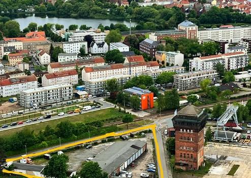 Das Grundstück befindet sich in bevorzugte Lage von Stralsund, nur etwa 100 m vom Strelasund entfernt - einer Meerenge der Ostsee, die die Hansestadt von der Insel Rügen trennt. die Umgebung ist geprägt von Wasser, Weite und eine hervorragenden Infrastruktur.
