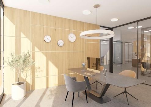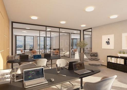 Die Büroetage ist großzügig, lichtdurchflutet und so konzipiert. Eine flexible Unterteilung in etwa hälftige Einheiten oder viertel Einheiten ist in der Planung vorgesehen, sodass die Flächen optimal an die individuellen Bedürfnisse der Mieter angepasst werden können. Damit eignet sich das Gebäude gleichermaßen für größere Unternehmen, die eine gesamte Etage exklusiv nutzen möchten, wie auch für kleinere Firmen, die von der repräsentativen Adresse und Einzelbüros profitieren wollen.
