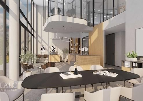 Im Erdgeschoss bietet ein großzügiges, repräsentatives Foyer den passenden Empfang für Mitarbeiter und Besucher. Über den zentralen Aufzug und das helle Treppenhaus sind alle Etagen barrierefrei erreichbar. Die oberen Geschosse profitieren zudem von attraktiven Terrassen- und Balkonflächen, die als Pausen- oder Besprechungszonen im Freien genutzt werden können.