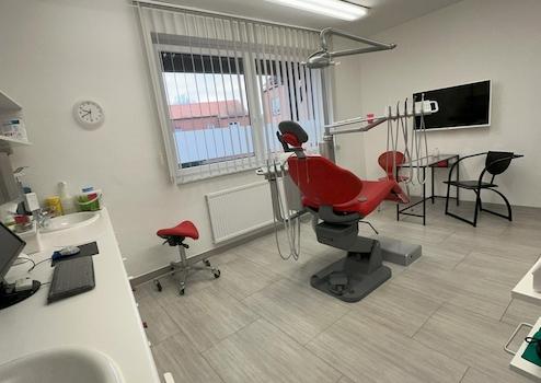 Die Praxis wurde laufend modernisiert – zuletzt wurden im gesamten Haus vermieterseitig neue, zweifach verglaste Kunststofffenster eingebaut – und ist vollständig eingerichtet. Die drei Behandlungsräume sind mit hochwertigen Zahnarztstühlen und moderner Technik ausgestattet. Ein großzügiger Empfangsbereich, ein angenehmes Wartezimmer, separate Damen- und Herren-WCs, ein eigenes Labor sowie ein großer Pausenraum mit Küche und zusätzlichem Mitarbeiterbad runden das Raumangebot ab.