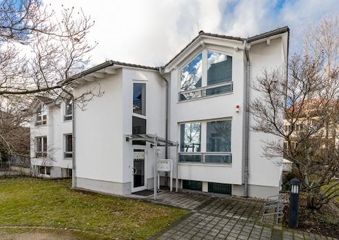 Das Büro beeindruckt durch seine ruhige, aber dennoch zentrale Lage. Das große, grüne Grundstück lädt zu kleinen Pausen ein.