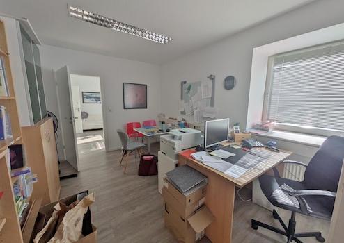 Die Büroetage befindet sich in einem Geschäftshaus an einer Hauptverkehrstraße im Zentrum von Brinkum.