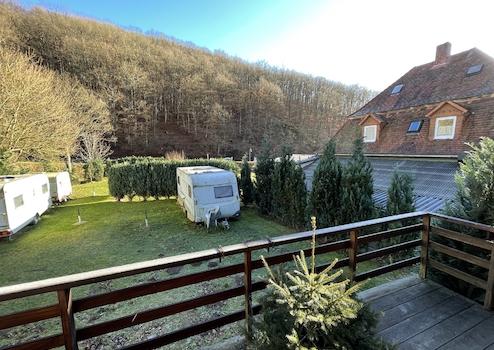 Hier bieten sich den Erwerbern vielseitige Möglichkeiten, denn das Objekt kann im laufenden Betrieb vom Eigentümer und Betreiber übernommen und direkt weiter genutzt werden. Zum Angebot gehören das Haupthaus mit Restaurant, Küche, Ferienwohnung und -zimmern, ein weiteres Ferienhaus in Holzbauweise, 13 Wohnmobil- bzw. Wohnwagenstellplätze, Kiosk und Biergarten. Außerdem erfreut sich ein florierender E-Bike-Verleih bei den Touristen großer Beliebtheit. Im Gastraum im Erdgeschoss finden ca. 60 Personen Platz, entsprechend mehr, wenn dieser für Veranstaltungen wie Disco-Abende oder Mottopartys genutzt wird. Eine komplette Theken- und Kücheneinrichtung sowie die Bestuhlung sind vorhanden. Zudem kann bei entsprechender Witterung der Außenbereich mit Terrasse als Biergarten genutzt werden. Weiterhin ist auf dieser Etage der Toilettenbereich untergebracht. Eine Ferienwohnung mit Schlafzimmer, Küchenzeile und Duschbad sowie zwei weitere Gästezimmer finden Sie im Obergeschoss. Im Dachgeschoss wurde ein weiteres Zimmer mit Bad eingerichtet. Neben dem Hauptgebäude befindet sich der Campingplatz mit Toiletten und Duschmöglichkeit. Auf dem rückwärtigen Grundstück ist ein gemütliches Ferienhaus für bis zu fünf Personen mit ca. 30 m² Wohnfläche vorhanden. Gut sichtbar direkt an der Edersee-Randstraße kann eine bereits vorhandenen Hütte als Kiosk oder Imbiss genutzt werden.