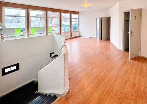 Die helle und freundliche Mieteinheit verteilt sich auf das Erdgeschoss und das 1. Obergeschoss. Die zwei Flächen sind über eine Treppe direkt verbunden.
