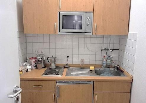 Zwei PKW-Parkplätze (je 40 €) und ggf. eine Garage (85 €) können angemietet werden. Weitere Parkplätze sind im öffentlichen Raum gegen Gebühr vorhanden.