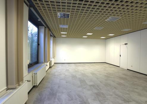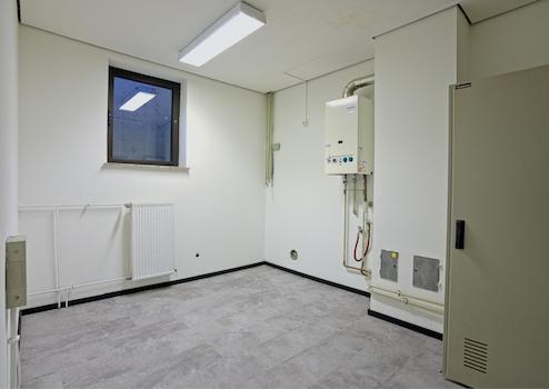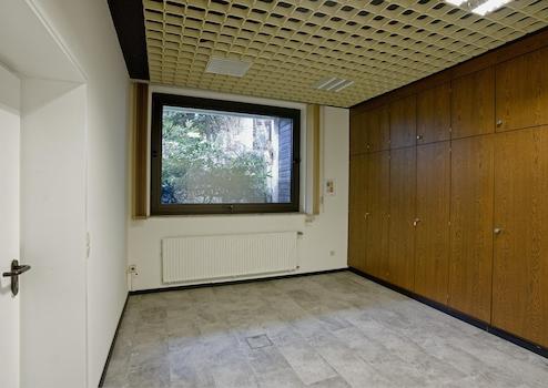 Du hast Zugang zu allen gemeinsam genutzten Räumlichkeiten mit großem Fenster, kleinem Büro und Geste-WC.