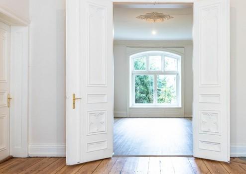 Stuckverzierte Decken, Parkettboden, neue Sanitäranlagen