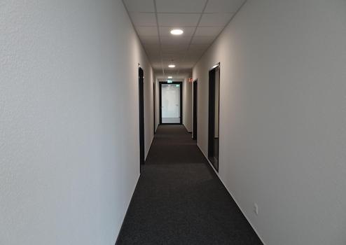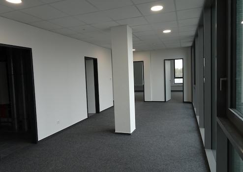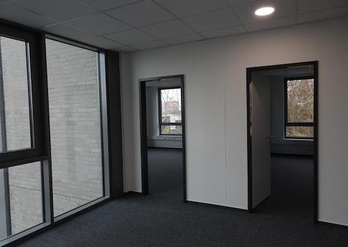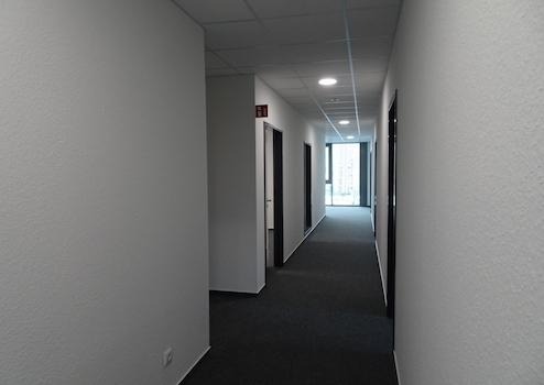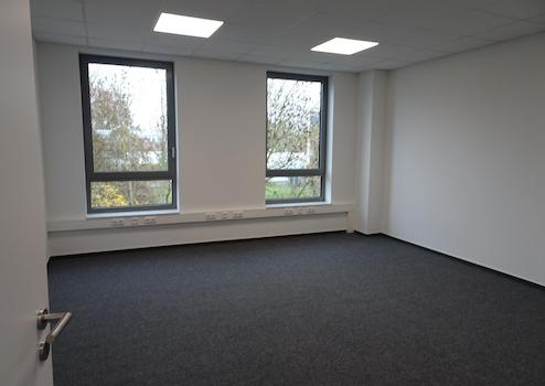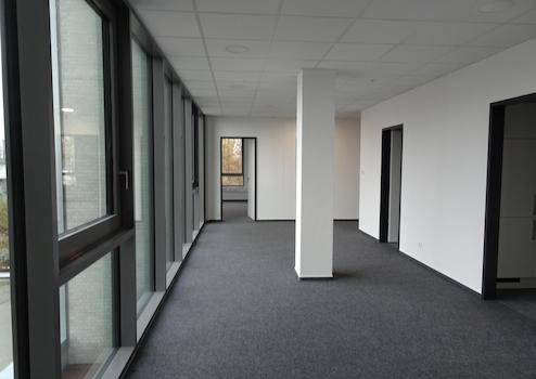 Die Bürofläche ist hell und freundlich ausgebaut. Alle Räume sind rechteckig geschnitten und haben jeweils zur Ost und Südseite außenliegende Raffstores. Ist ist ein klimatisierter großer Besprechungsraum mit einer anschließenden Pantry vorhanden. Der separate Serverraum ist klimatisiert und mit einem Serverschrank voll ausgestattet. Die beiden WC-Anlagen haben jeweils auch eine Dusche. Alle Büroräume sind KAT 7 verkabelt.