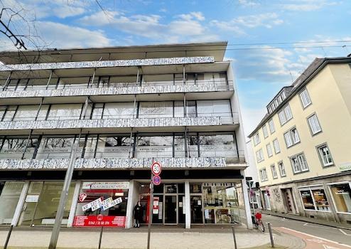 Die hellen Büro-/Praxisräume befinden sich im 2. Obergeschoss (mit Aufzug) eines denkmalgeschützten Geschäftshauses aus dem Baujahr 1956.
