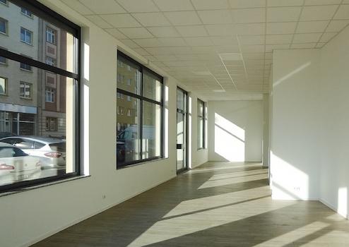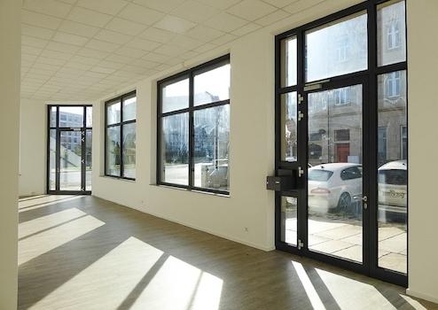 Die großen Schaufenster lassen viel Licht in die Mietfläche und geben dem Raum eine angenehme Atmosphäre.