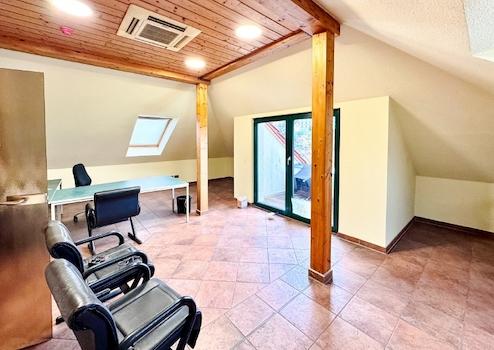 Zur Vermietung steht eine Bürofläche mit insgesamt ca. 412 m², die sich auf ca. 132 m² im 1. Obergeschoss und ca. 280 m² im Dachgeschoss verteilt.