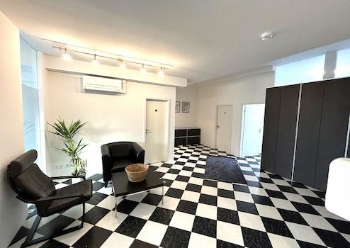 Ihr neues Büro liegt in einem Büro- und Geschäftshaus, in dem auch wenige Wohnungen sind. Der Lift bringt Sie bequem in die erste Etage. Ihr neues Büro verfügt über einen großzügigen Empfangsbereich mit Garderobe, vier z.T. unterschiedlich große Büros und zwei WC-Einheiten. Auch eine Teeküche ist selbstverständlich vorhanden.