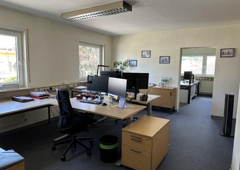 Im Haupthaus gibt es insgesamt 13 gut geschnittene Büroräume und auf jeder Etage sanitäre Anlagen. Die Konferenzräume bestechen durch die großen Fensterfronten, eine Unterteilung in kleinere Räume wäre ebenso denkbar. Der Übergang zum Anbau ist mit einer Glasüberdachung gestaltet, sodass der Flur sehr hell, freundlich und großzügig erscheint. Das Gebäude kann als Büros genutzt werden, eignet sich jedoch auch für eine andere gewerbliche Nutzung. Die Flächen sind ab 220m² teilbar. Es sind 3 Küchen vorhanden.