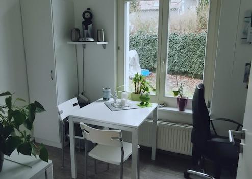 Es liegt nur wenige Schritte vom Stadtzentrum mit der Fußgängerzone und allen Versorgungmöglichkeiten entfernt. Bushaltestelle und Verbindung zum Bahnhof und der S-Bahn liegen in unmittelbarer Nähe.