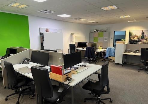 Der Gebäudekomplex wurde im Jahr 2008 errichtet und befindet sich in einem sehr gepflegten Zustand. Weitere Büroflächen im Gebäude werden aktuell durch eine Krankenkasse genutzt. Die Mietfläche verfügt über einen separaten Eingang mit Automatiktür und eigener postalischer Adresse. Neben den gewerblichen Nutzflächen gibt es noch weitere Wohnungen sowie eine Tiefgarage mit Kfz-Stellplätzen im Objekt. Die hellen Büros mit abgehängter Rasterdecke sind alle sehr gut belichtet. An den Mitarbeiterbereich angeschlossen befindet sich eine kleine Terrasse mit Blick in den Innenhof. Vom zentralen (innenliegenden) Server-/Archivraum werden die Datenleitungen (CAT-7) in die einzelnen Räume geführt. Über Bodentanks im Fussboden können die jeweiligen Arbeitsplätze vernetzt werden. Neben dem Mitarbeiterraum mit Teeküche gibt es dann noch je ein Damen- u. Herren WC sowie ein barrierefreies WC mit dezentraler Warmwasseraufbereitung. Im hinteren Bereich der Mietfläche befindet sich ein großzügiger Besprechungs-/Veranstaltungsraum der multifunktional genutzt werden kann.