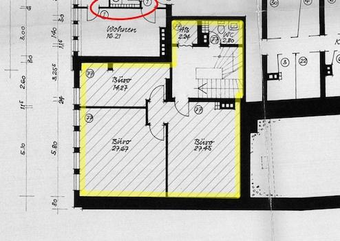Obwohl sich die Fläche im 2. Untergeschoss befindet, profitiert der Hauptraum von einer ausreichenden Belichtung, da das Gebäude aufgrund seiner Hanglage auf der Rückseite des Grundstücks zur Gebsattelstraße hin, auf dem Niveau des 1. Obergeschosses liegt.