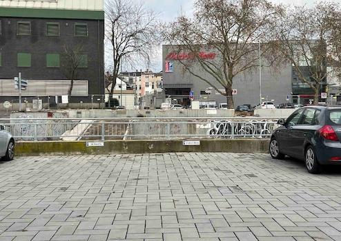 Frequentierte Zufahrtsstraße (Uerdinger Str. 24) zum Moerser Stadtzentrum, nur ca. 150 m von Busbahnhof (Königlicher Hof) und Fußgängerzone entferrnt.