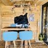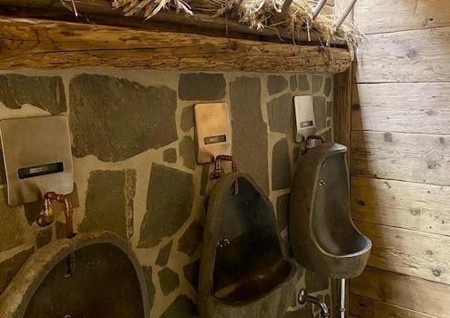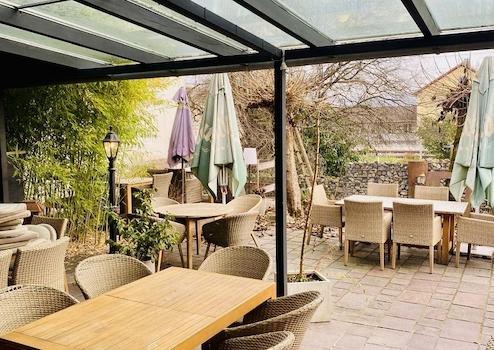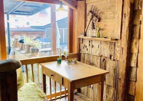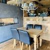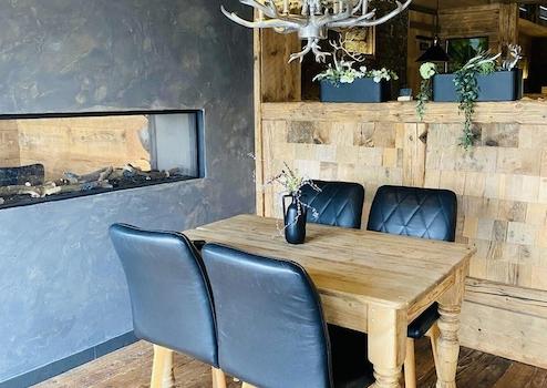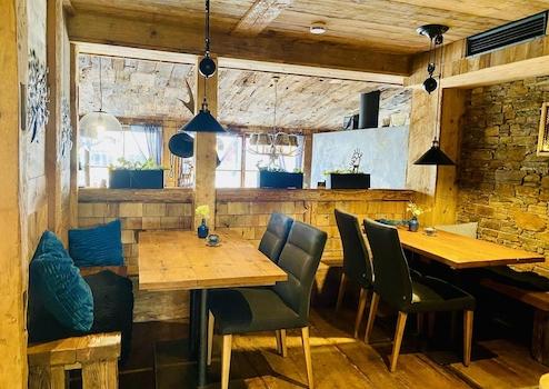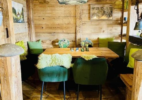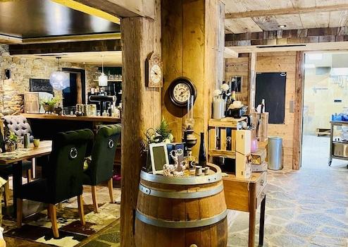 Ein moderner Gaskamin und ein hochwertiger Altholzausbau verleihen dem Gastraum eine einladende Atmosphäre. Eine Wärmerückgewinnungsanlage sowie eine Photovoltaikanlage mit 27 kW Leistung tragen zu einem energieeffizienten und wirtschaftlichen Betrieb bei. Doppelt verglaste Holzschiebetüren vorne und hinten sorgen ebenfalls für gute Energieeffizienz.