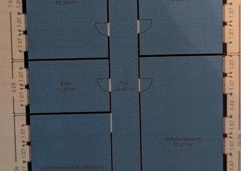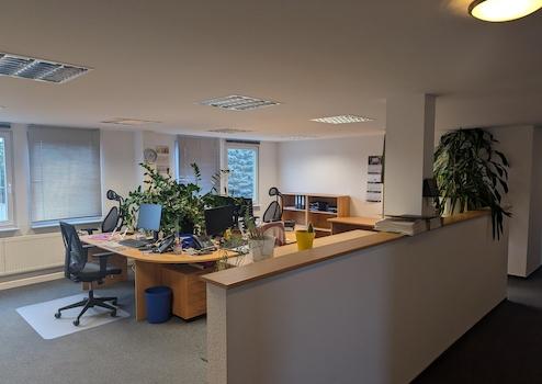 Fläche: Ca. 206 m² Nutzfläche, aufgeteilt in 4 helle Büroräume, einen Empfangsbereich und eine Küche.
