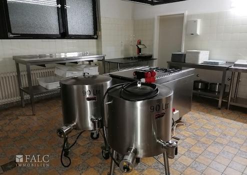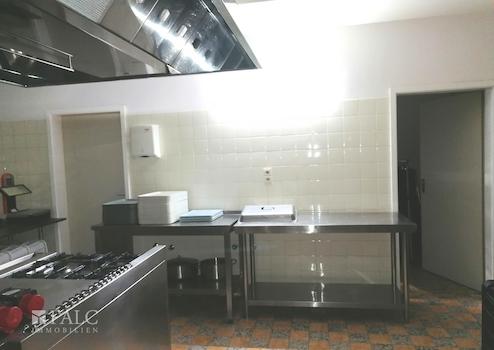 Die Küche, das Herzstück jeder Gastronomie, ist großzügig dimensioniert und bietet ausreichend Platz für die Zubereitung kulinarischer Köstlichkeiten. Sie ist funktional gestaltet und ermöglicht einen reibungslosen Arbeitsablauf.